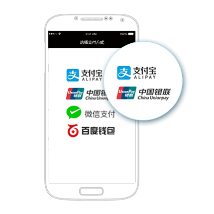 领创聚合支付平台,为iOS/Android原生/H5 App提供支付解决方案:支持微信支付、支付宝支付、银联手机支付、百度钱包等。